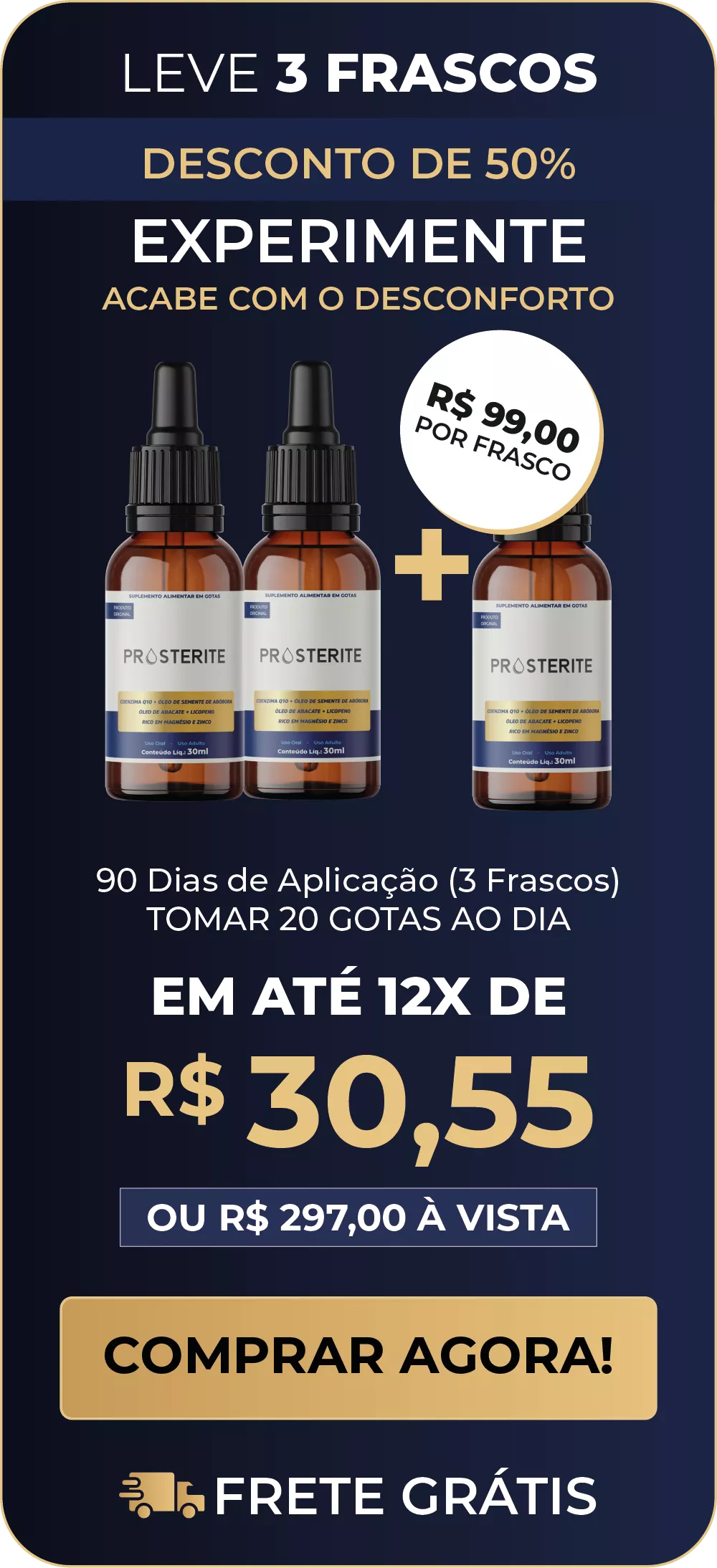 Estamos comprometidos em garantir que o PROSTERITE cumpra o que promete, e é por isso que oferecemos uma garantia incondicional de 30 dias.